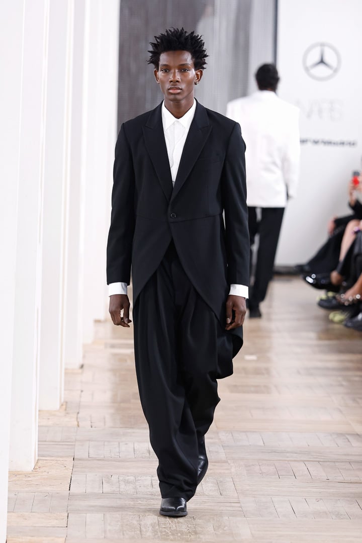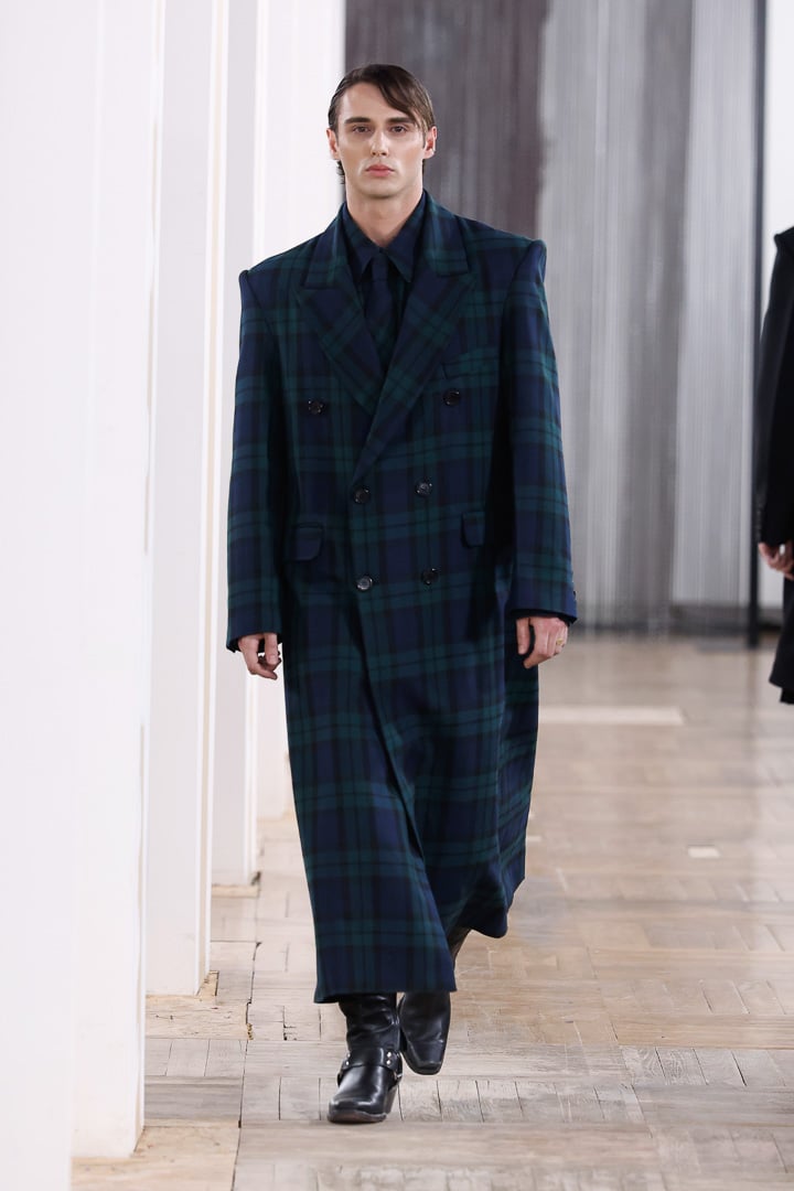 At first glance, it can seem like there’s not much in the way of cohesion with this collection. There’s a plaid trenchcoat shown next to a white satin set of tails that are hard to reconcile with each other. However, I think this collection is less about presenting a unified visual language than being about a cohesive idea behind it. The point is to question who can wear what, and what it says about both the wearer and the observer.
