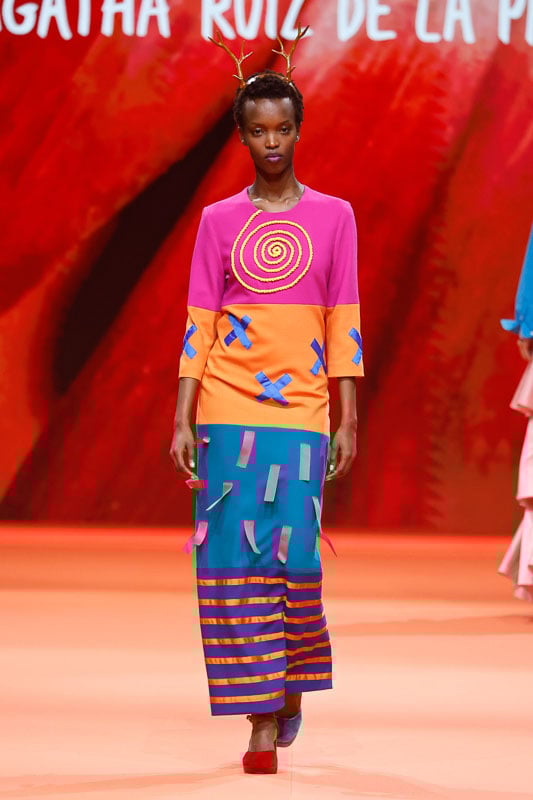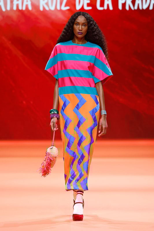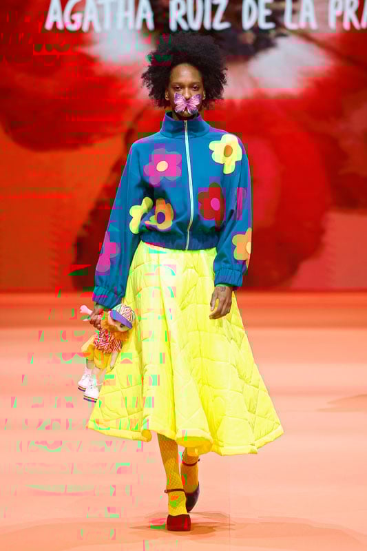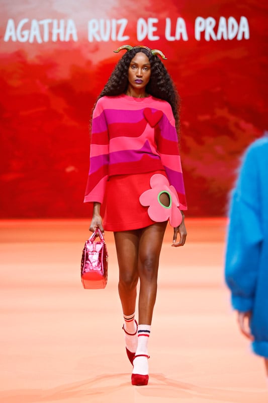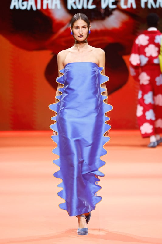 Agatha Ruiz de la Prada presented her latest collection, “Nature in a Visceral State,” at Mercedes-Benz Fashion Week Madrid. The collection is inspired by her own creative world, but with a more modern twist. It feels like a journey of self-exploration, where she revisits her most recognizable designs and updates them using new tools like Artificial Intelligence.
