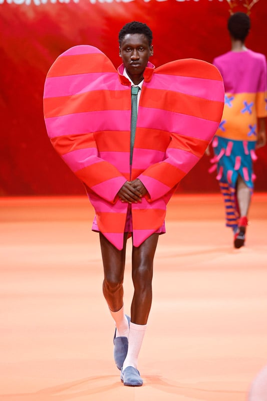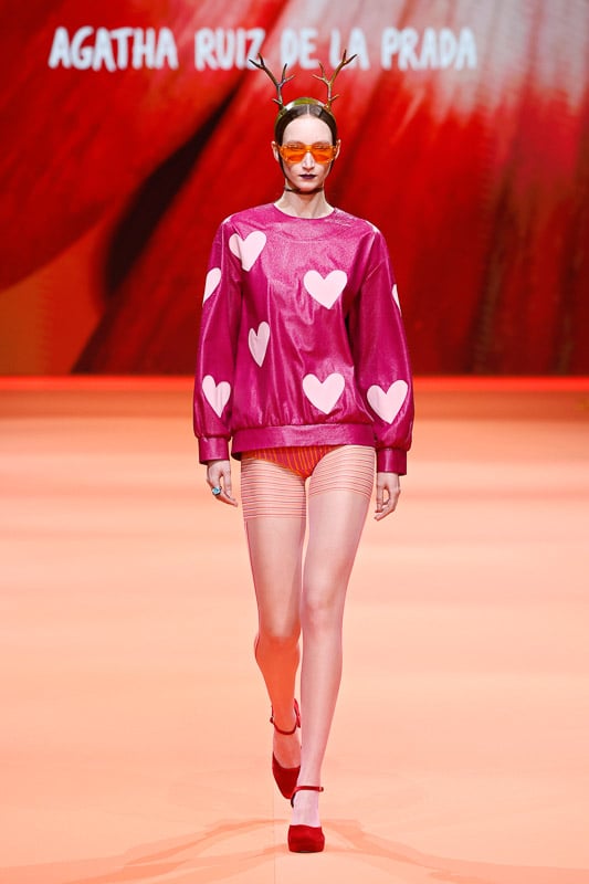 Hearts appear repeatedly throughout the collection, reinforcing a key element of the designer’s identity. Overall, this motif ties the collection together and keeps it grounded in her signature style. As the final model walks down the runway, the show closes to enthusiastic applause, leaving us excited to see what Agatha Ruiz de la Prada will come up with next.