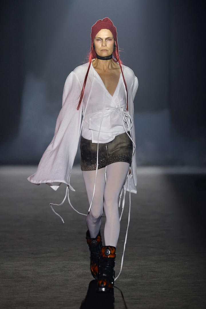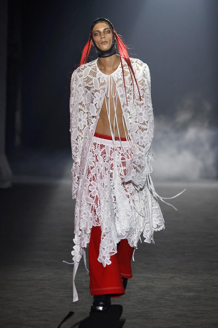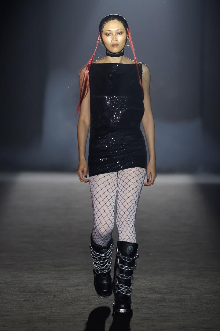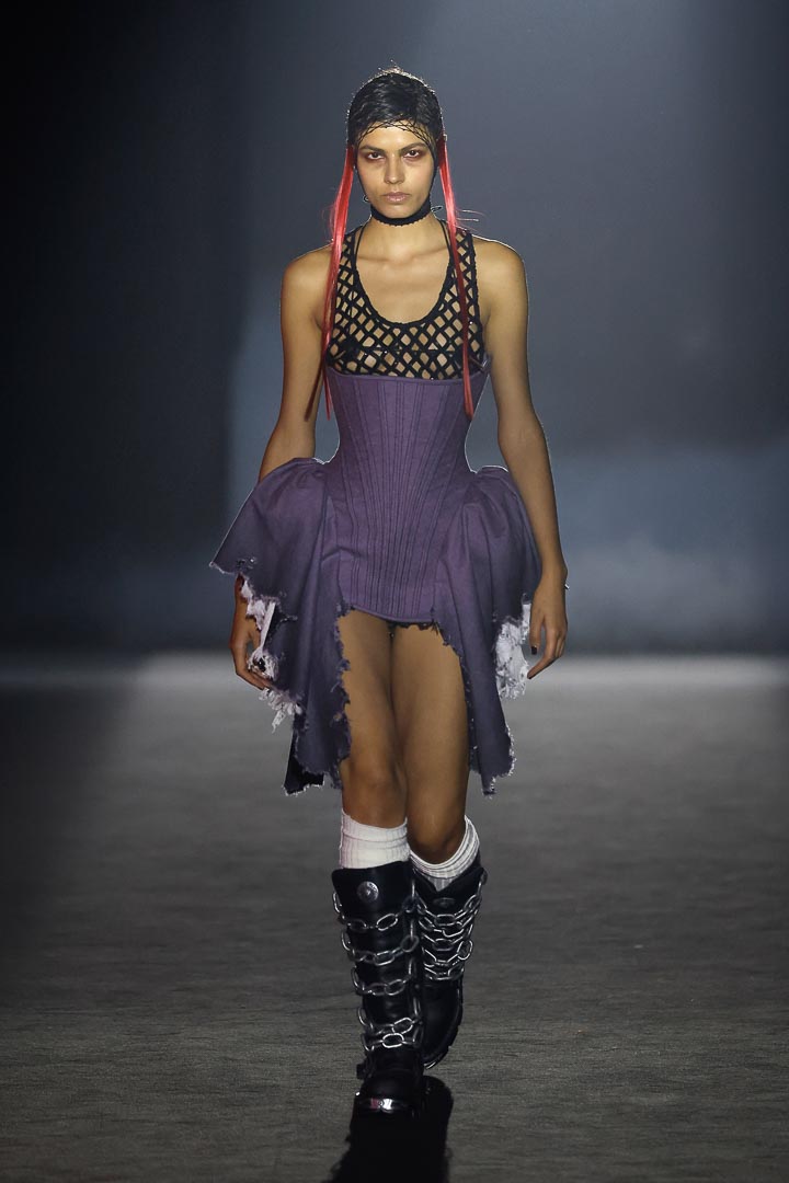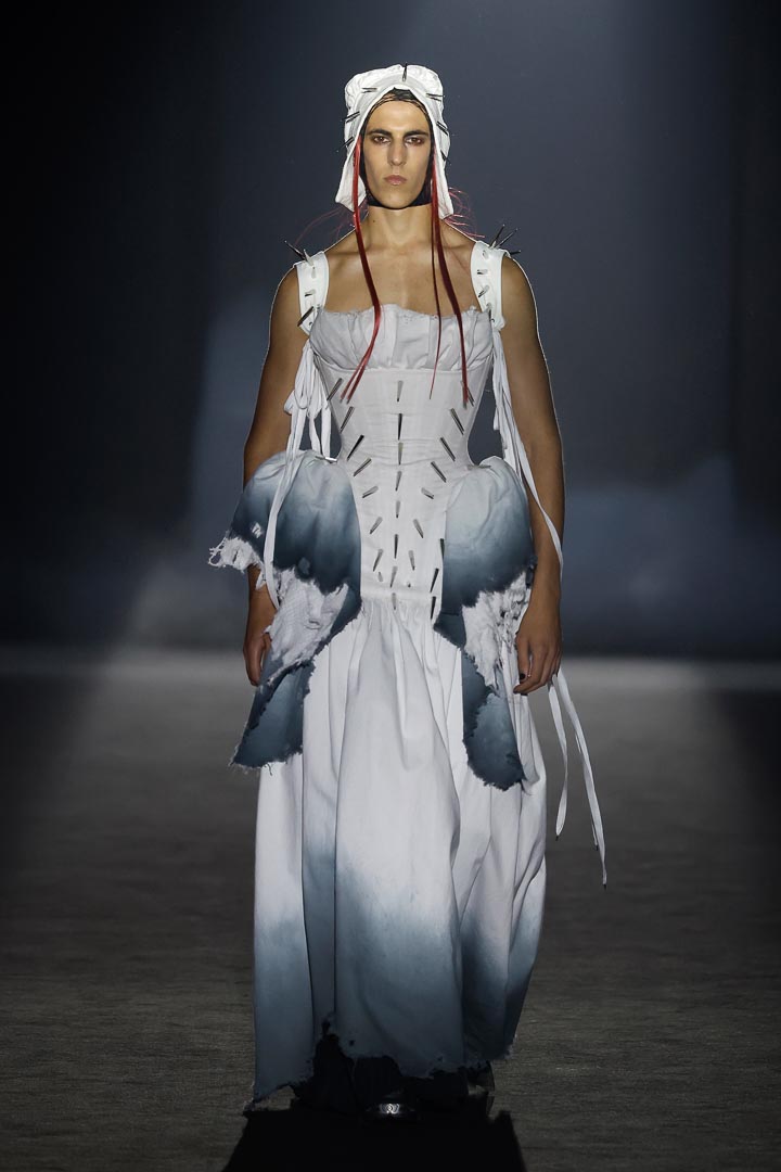 The new collection ‘In Nomine Heretica’ by Aleixandri Studio, presented at Barcelona Fashion, is a result of a meticulous design process that connects the persecution of witches in the Middle Ages with the historical persecution of sexual and gender nonconformity. It is a journey between the memory of the witch hunts and the historical persecution of sexual and gender dissidence. The collection draws a parallel between bodies branded as heretics and queer bodies, which for centuries have been punished, hidden, or ridiculed.