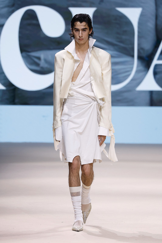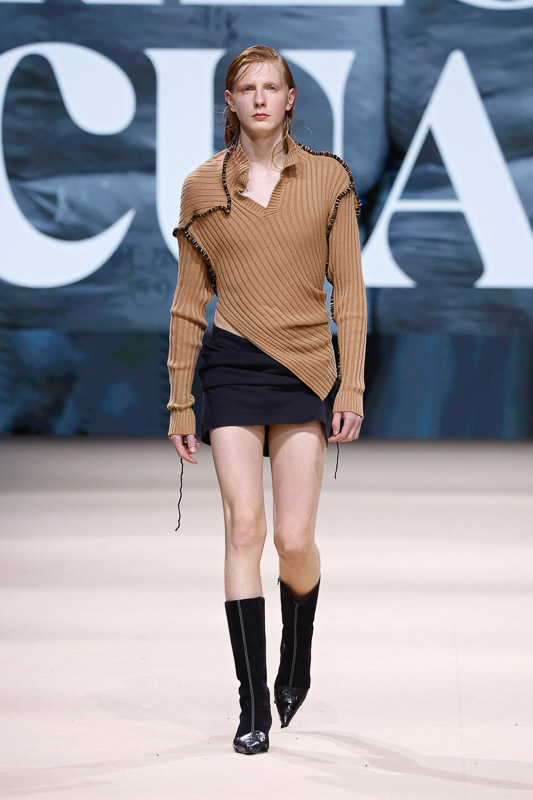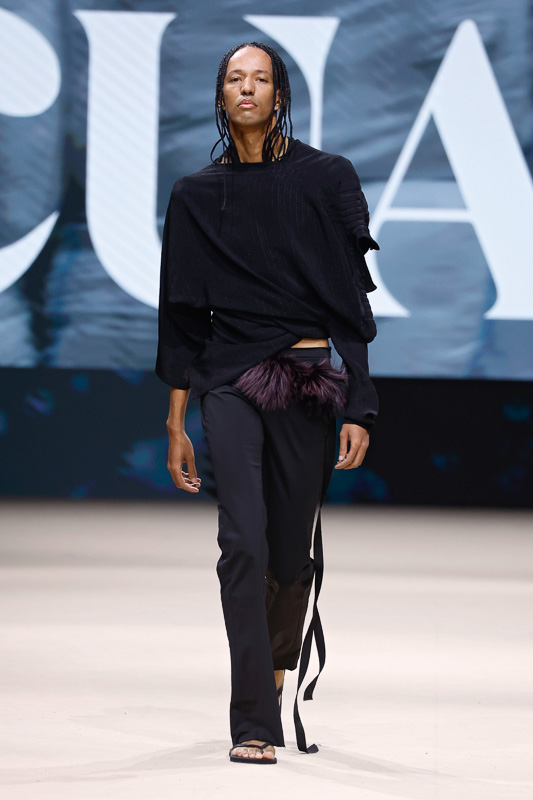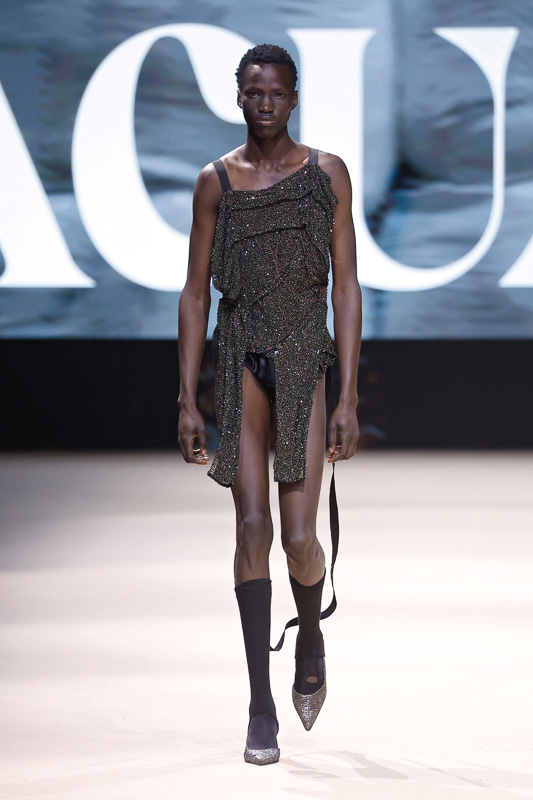 Either way, it is clear that Acuario doesn’t necessarily design for ease. His work traverses more introspective realms, challenging norms or expectations that define fashion as refined, conventionally wearable, or even fully understood.