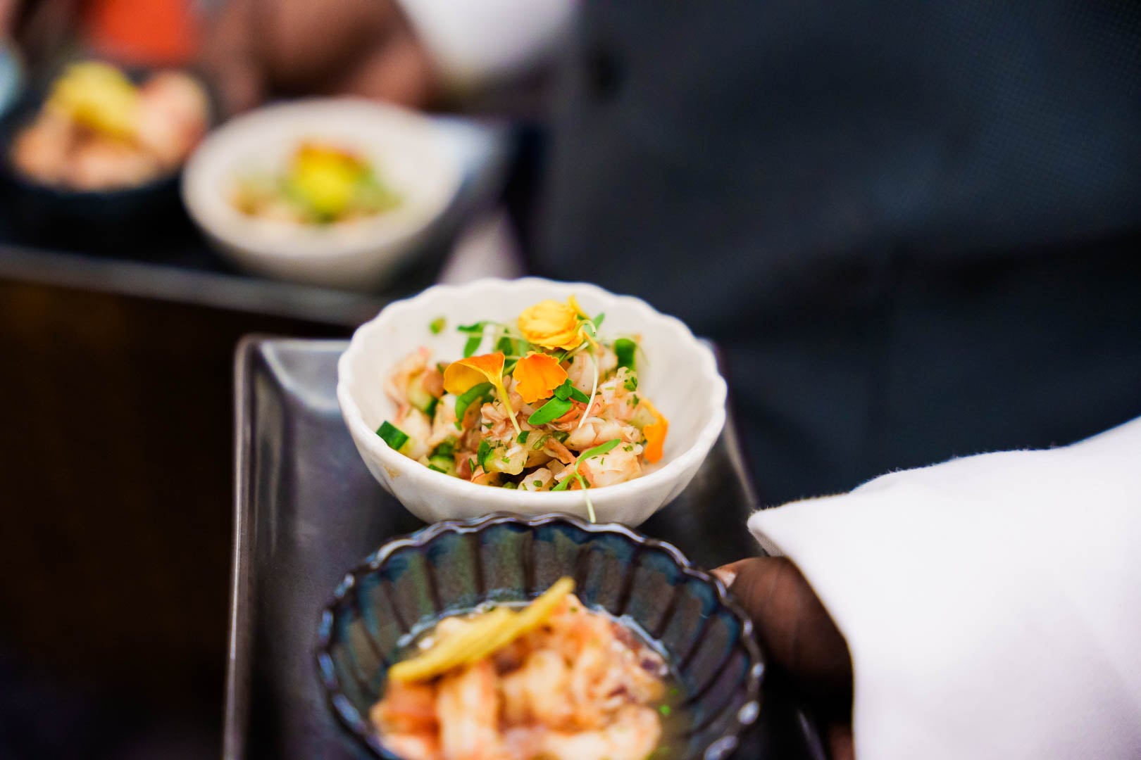 Later that evening was my next event – A Vintners Gala: CARBONE at Artisans of Wine & Food, the culmination and climatic segment of the Artisan affair. Headlined by celebrity chef Mario Carbone, it was a night of extravagance and opulence that was reminiscent of supper clubs of bygone days, and vintage glamour. It began with a short, tented reception on the Grand Lawn. Moving into the Grand Ballroom, I was greeted by dancing red roses and the expressive sounds of the saxophone and clarinet.
