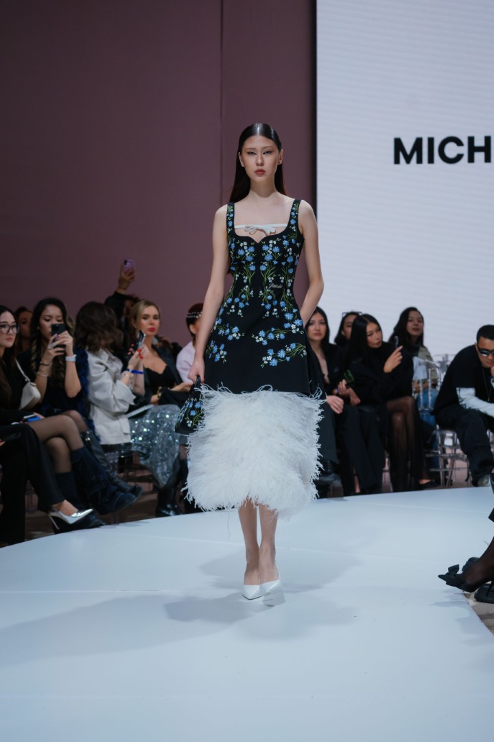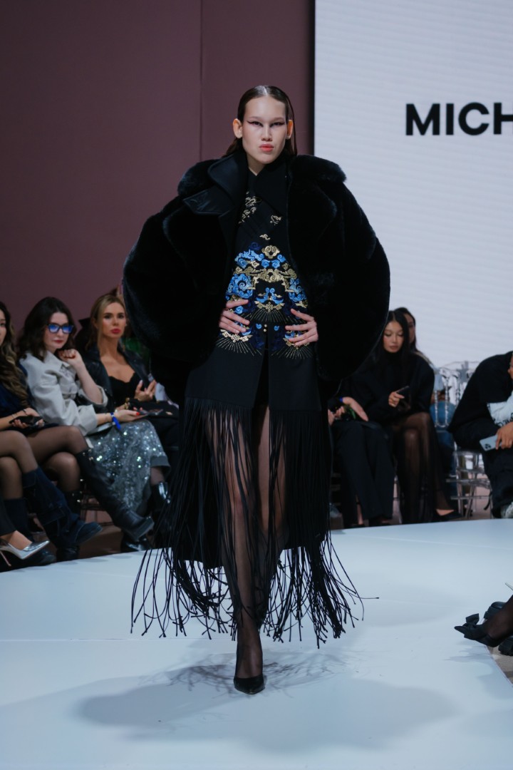 For this occasion, Michel & Amazonka presented a carefully curated selection of 24 pieces distinguished by their character and delicacy, pieces defined by refined touches and meticulously crafted silhouettes, conceived by and for the final client. Each design reflects the brand’s commitment to quality and, above all, to its greatest source of inspiration: culture. The collection ranged from evening wear for special occasions to designs created entirely for everyday life, bringing elegance into the ordinary. Every embroidery on fur and cashmere, and every appliqué technique, underscores Michel & Amazonka’s passion and devotion to art and craftsmanship.