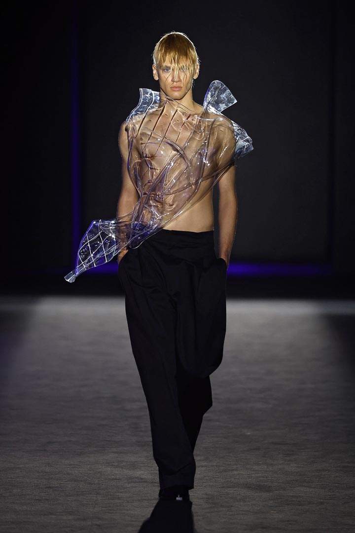 The Spanish fashion house Acromatyx presented its Spring/Summer 2026 collection, titled “8,” at the 080 Barcelona Fashion Week in October 2025. The label was founded in 2021 by designers Franx de Cristal and Xavi García, who also head the experimental brand 44STUDIO. Acromatyx, launched in 2021, is described as the “natural evolution” of 44STUDIO, which was founded in 2014. Acromatyx’s aesthetic is characterized by an avant-garde, minimalist, and deconstructed style, rooted in ethical and sustainable practices.