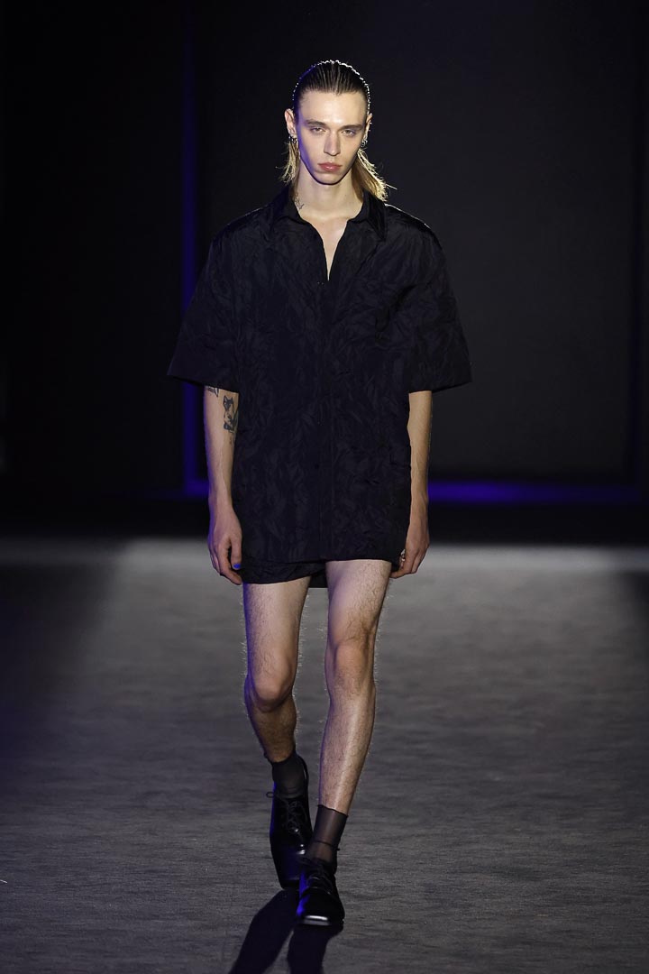 There were some fascinating recurring pieces in the collection. The brand developed deconstructed collared shirts that hinted at the modern businessman’s attire. They came with oversized, short, wide sleeves but were embellished at the chest with additional, more conventional long sleeves tied in a bow. They felt fresh and free and frankly quite good-looking. One can see the careful construction of the shirts even as it was deconstructed to hint at rules being subverted for beauty. These shirts were used throughout the collection in combination with other pieces.