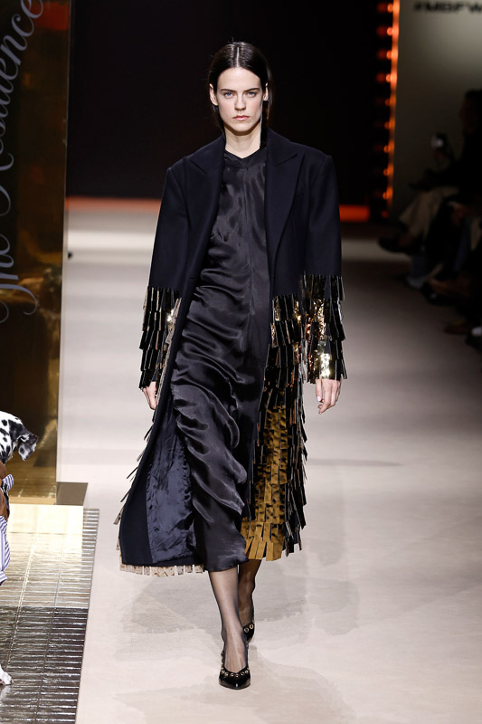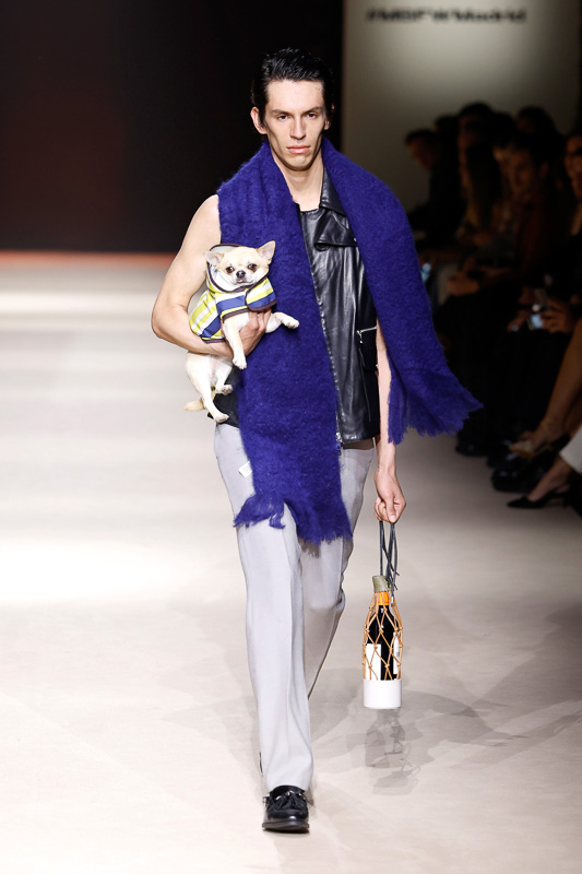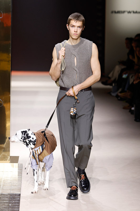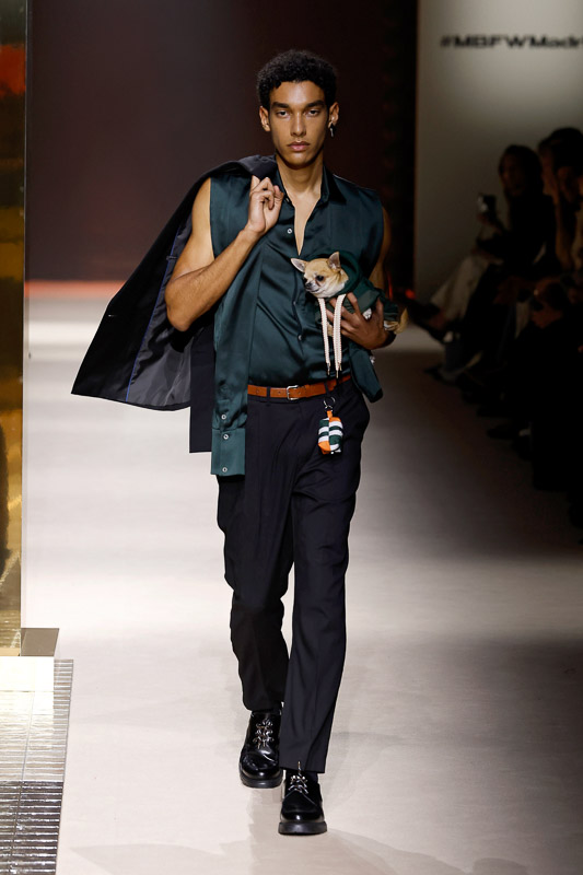 Then came a moment that caught me off guard, in the best way. Not only did the models walk the runway, but dogs did too. They wore a mini clothing and accessories line made in partnership with Kiwoko. A portion of the profits goes to animal shelters to raise awareness around responsible pet adoption.