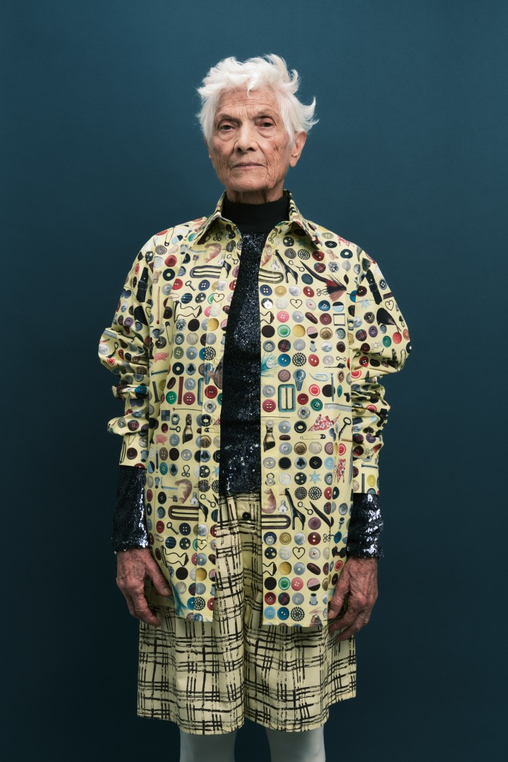 The move itself, a look back at over ten years of brand history, unearthed a treasure trove of long-forgotten and hidden gems. And this nostalgia is in the DNA of the new prints. One is a masterful composition of found buttons and curious objects, scanned individually and assembled on a stark black and yellow background to form a whole new entity. Another is a beautifully enlarged, blurred image of a repeated vintage button. Even the colored tapes used to seal moving boxes became the basis for a new, multicolored stripe print.