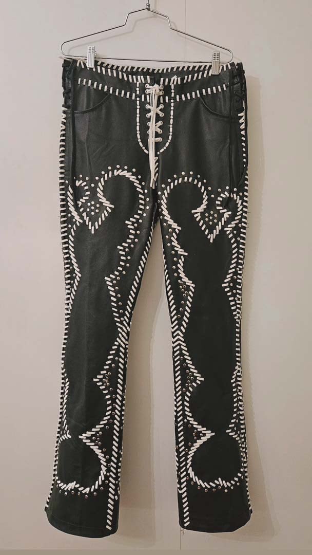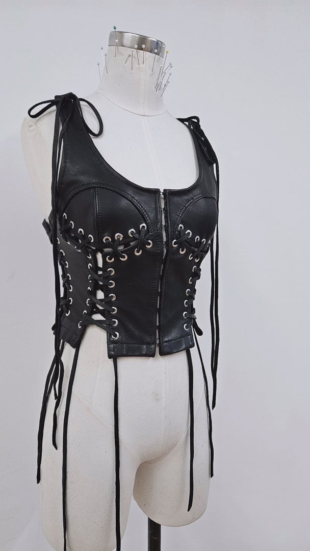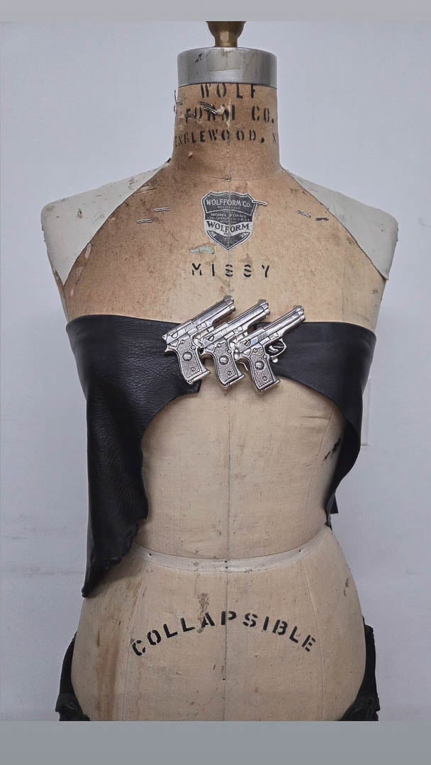 Denise studied fine art at Parsons School of Design in New York, which helped shape her artistic approach at Leatheracci. Her long-standing interest in fashion began earlier, when she worked as a student at Charivari Workshop and later at Charivari 57 as the main cashier. Charivari was a legendary New York boutique known for championing avant‑garde and international designers. Since then, she has been moving the brand forward. “I start with a drawing, make the pattern, then bring the piece to life by hand. I’m also using materials Calvin left behind to create new designs. Every garment is unique, and every piece tells a story.”