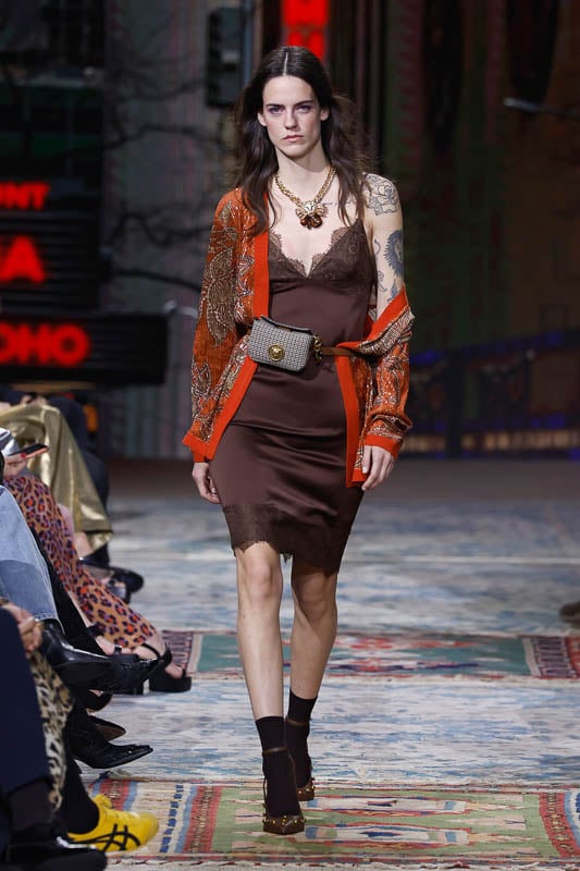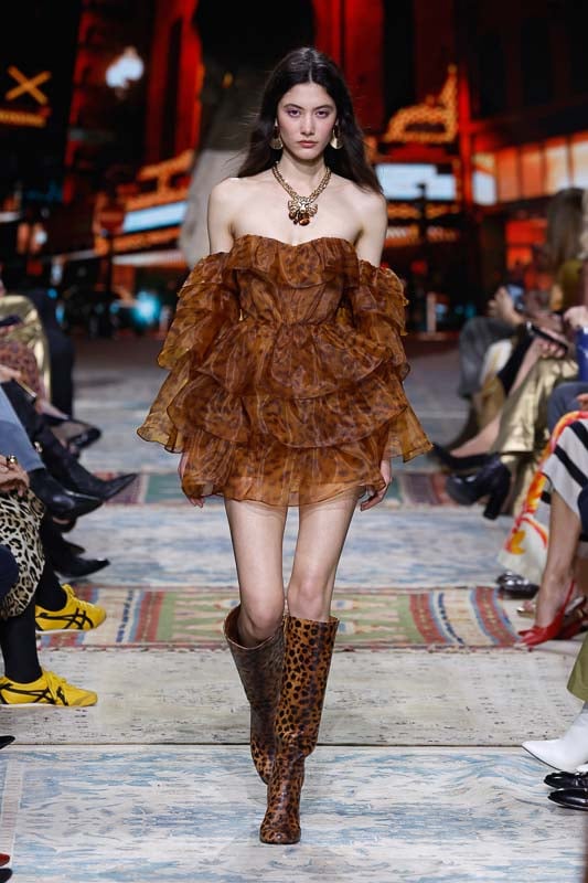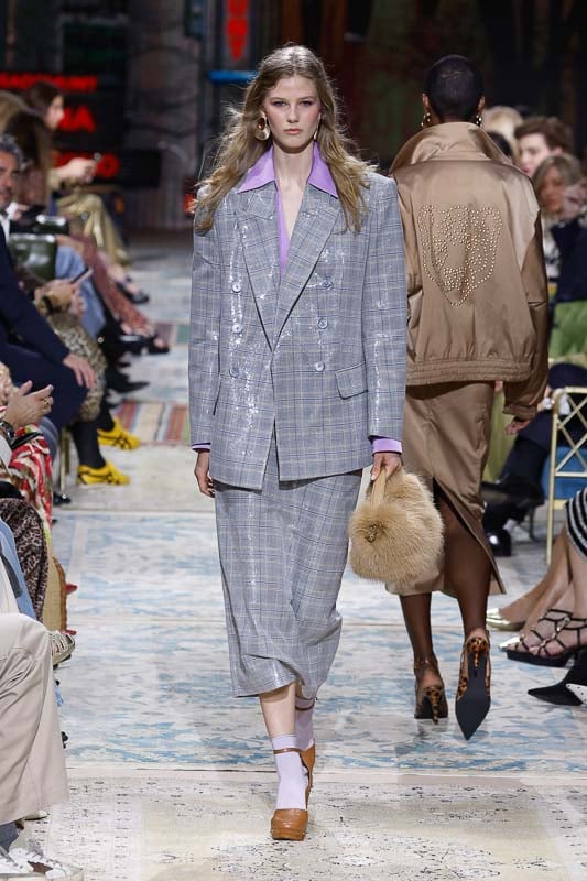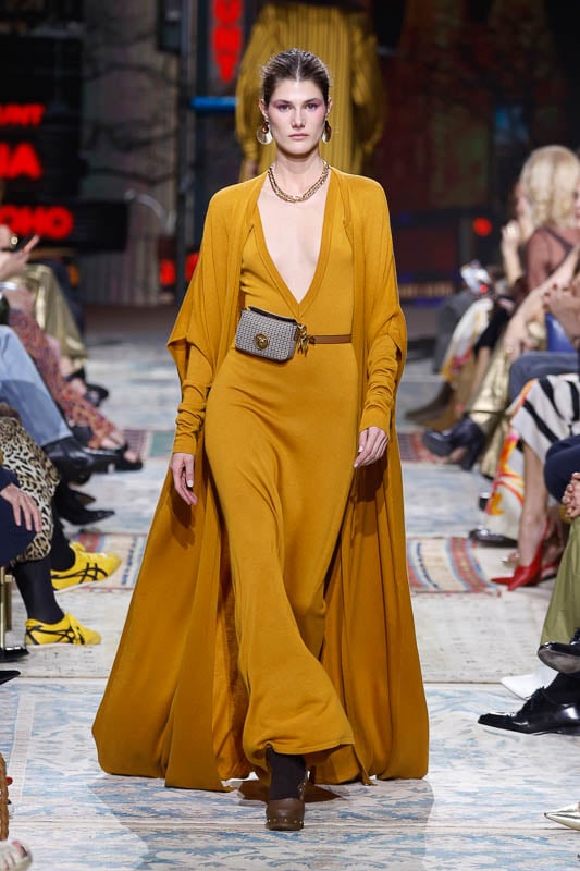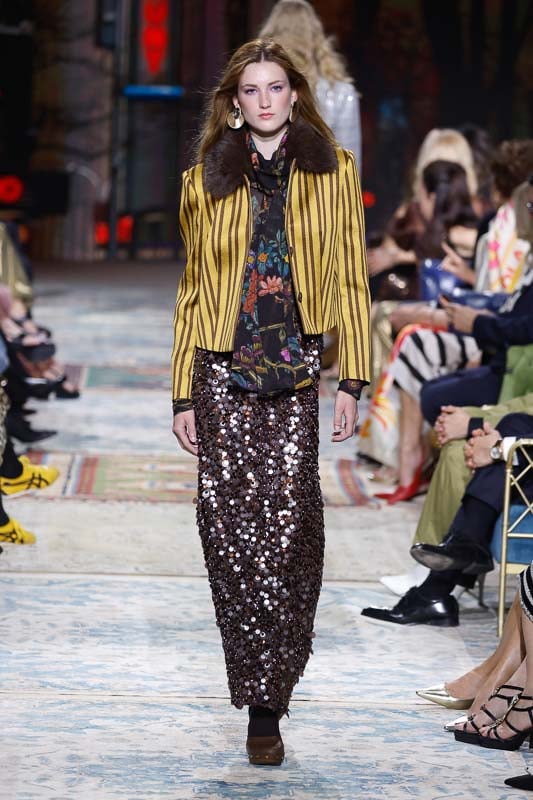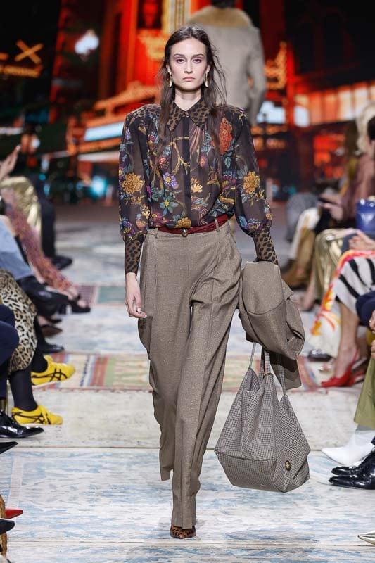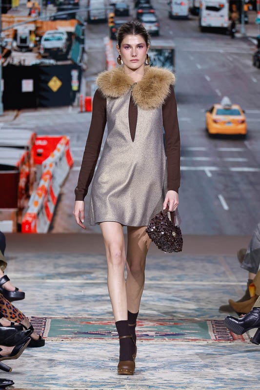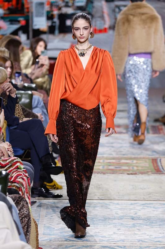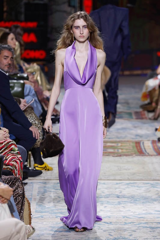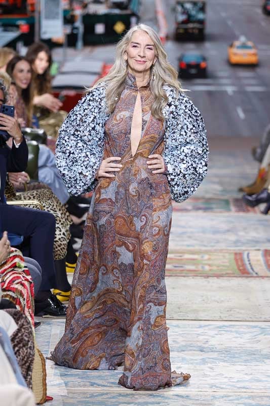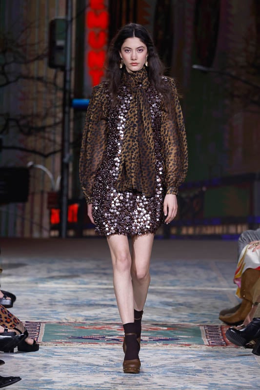 The balance was so strikingly established during some moments that it was hard not to look past. Tailored elements like vinyl jackets and blazers, firmly grounded fluid fabrics, and maxi dresses. At the same time, bold prints borrowed from an artistic episode of New York, such as florals, paisleys, vintage geometrics, retro logomania, and the iconic animal print, were offset by cleaner lines and refined silhouettes. These intentional contrasts paved the way for a unique tension that felt modern, and not costume-like.