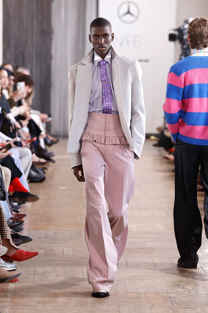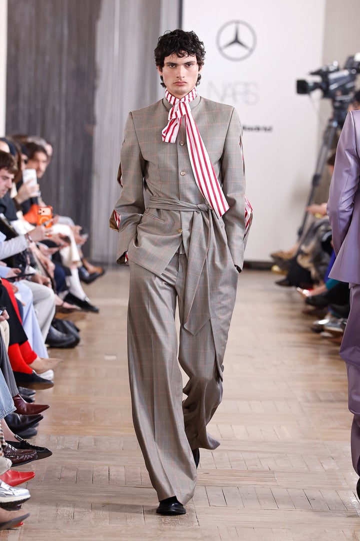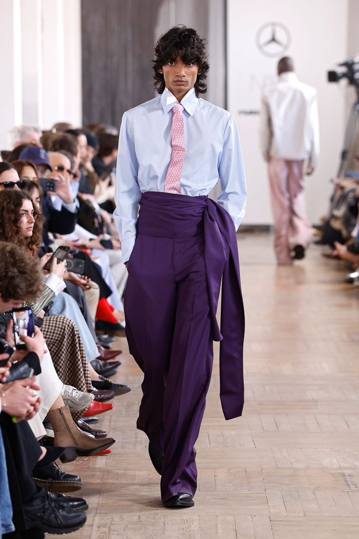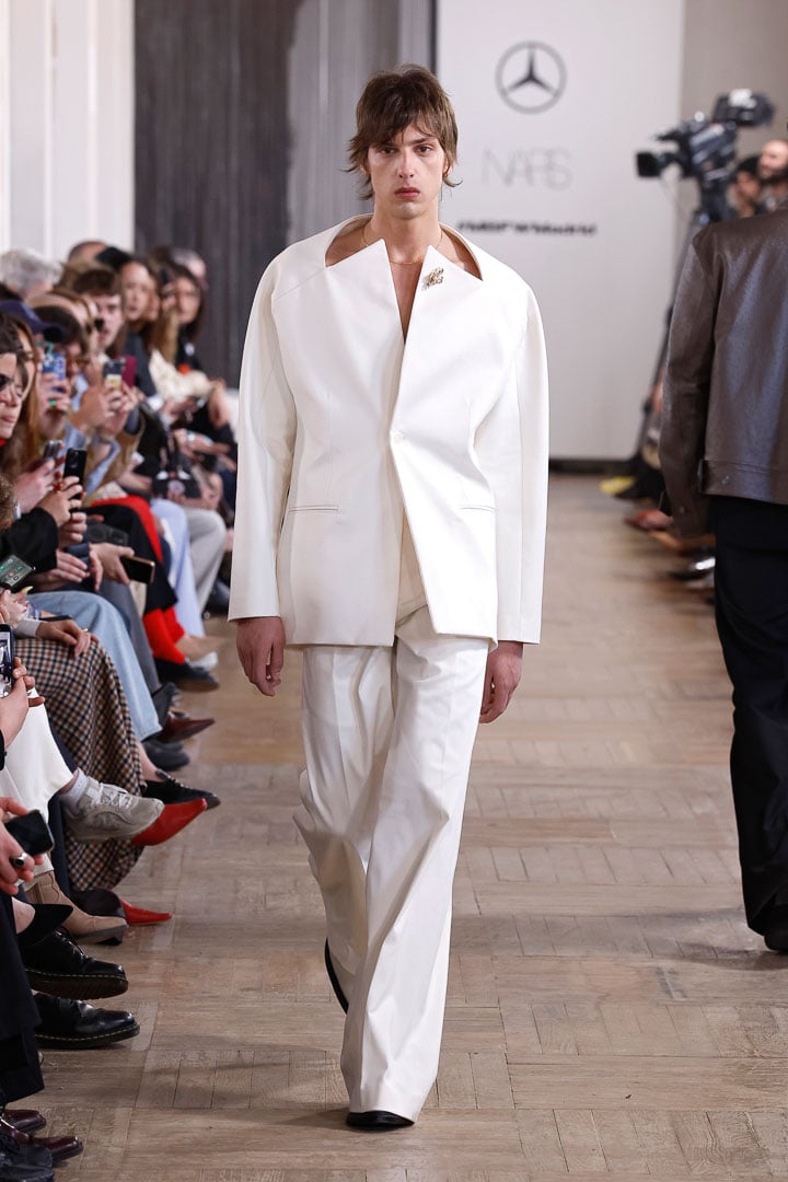 Materials seen in this season’s outfits include the specific cotton used for pharmacists’ lab coats. This fabric serves as a silent tribute to Jaime’s childhood spent with his grandfather in the family pharmacy. It is a memory transformed into a real-world substance, and in turn, used to fuel the designer’s new garments.