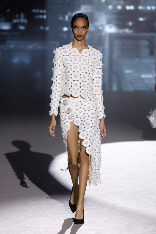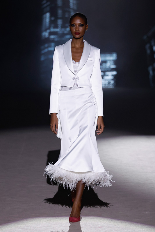 Odette Álvarez’s new collection, SWING, for Mercedes-Benz Fashion Week Madrid, understands the assignment. Taking inspiration from the effortless elegance of the period, her collection is a fantastic study on “less is more.” Inspired by New York City’s art deco elements, the collection is at once both free-flowing and geometric, much like the city itself.