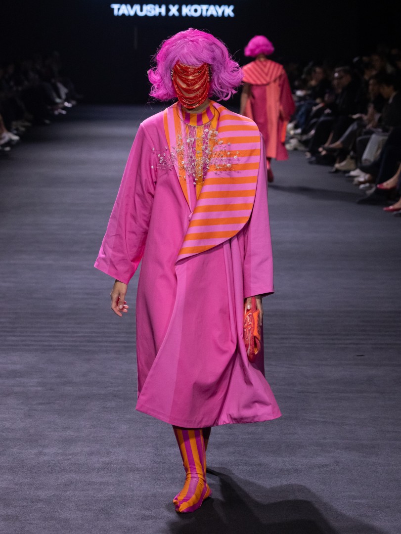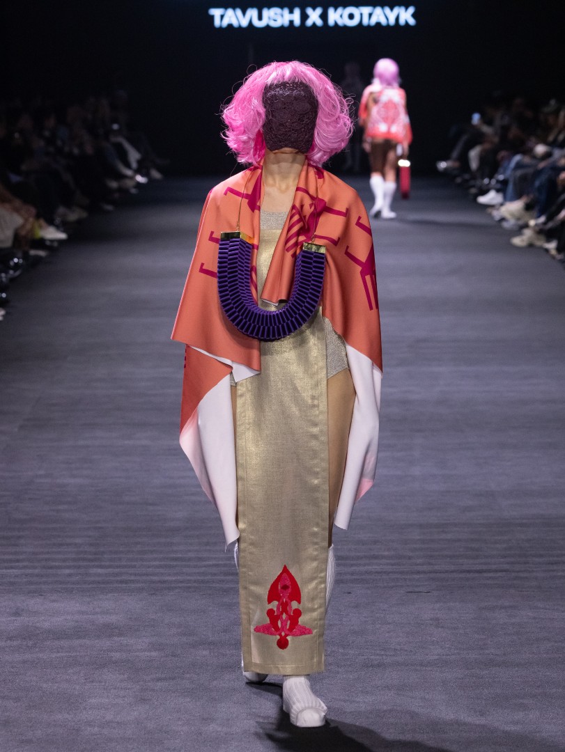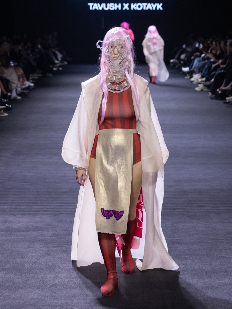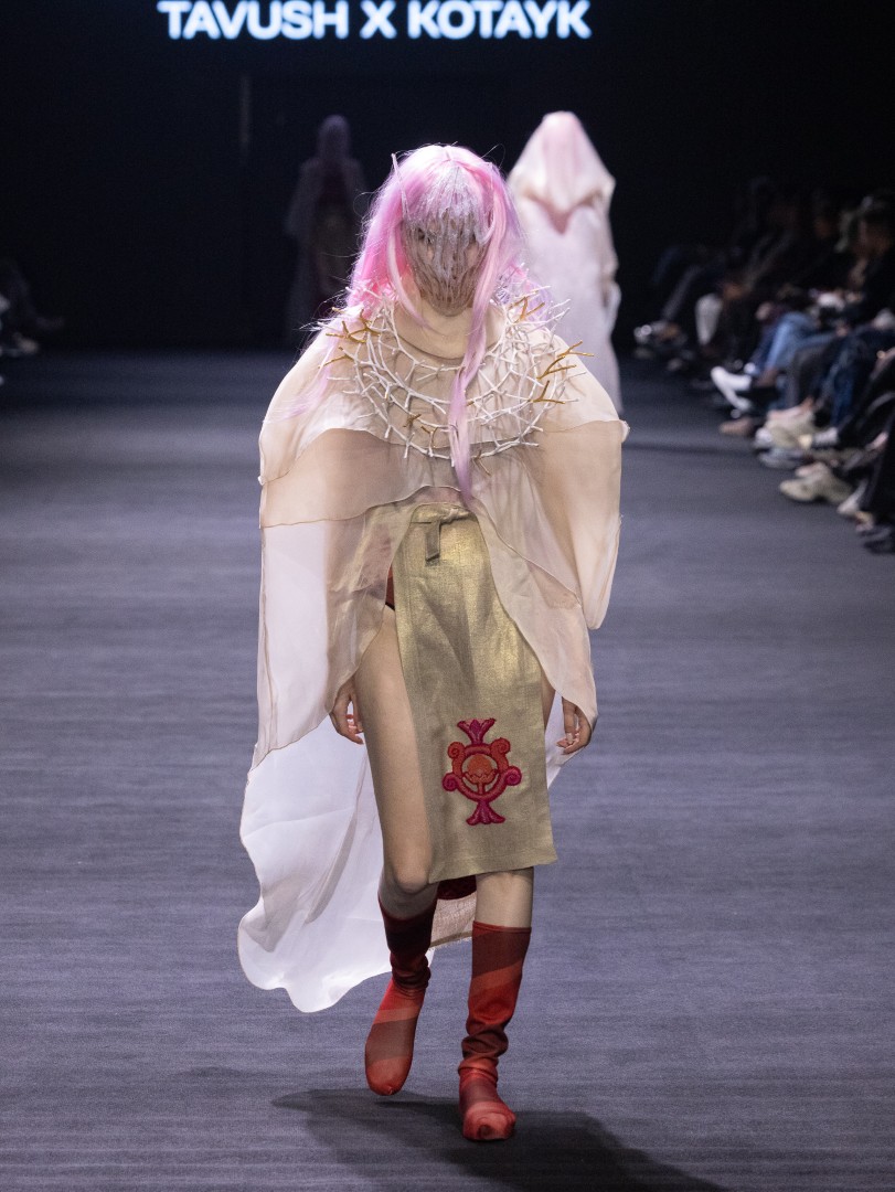 The collection incorporated bold textiles that symbolize strength and renewal, along with translucent layers. The emphasis of this collection is on “hand-made garments” and regional craftsmanship. The fusion of these deep-seated cultural concepts with contemporary silhouettes and futuristic elements, such as “futuristic gold forms,” creates a dialogue between the past and the future —the essence of the collection’s narrative.