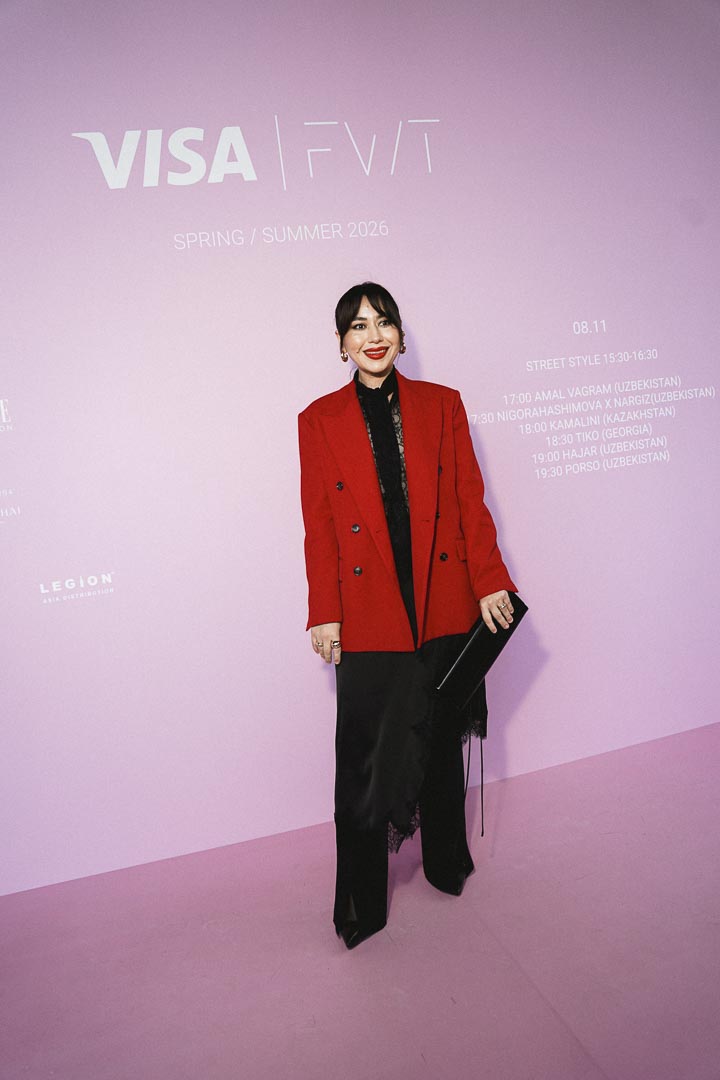 As the organizers claim, this was the intellectual center of all that was around: the effect of immersion, in which space, sound, and event details freely flowed into each other and organically created a feeling of the present moment. Movement, space, and sound are combined to tell a single story. “Visa Fashion Week Tashkent is not a repetition of Visa Fashion Week Almaty in Tashkent, but a new work written by young talents. We see on the runway the energy of the future being born-boldness, individuality, and the search for one’s own voice,” says Bauyrzhan Shadibekov, CEO and producer of Visa Fashion Week Tashkent.