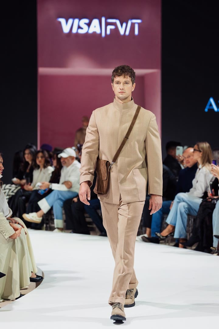 Azamat Somatov’s SS26 collection completely captivated me. Most of the collection focuses on menswear, and a few womenswear pieces ended up fitting naturally and felt just as elegant. From start to finish, every look seemed effortless. The models wore each outfit with ease, and every piece had a clear purpose. Small details like hats, sunglasses, and delicate necklaces added personality while keeping the focus on the clothing’s clean, simple lines. These accessories felt thoughtful rather than distracting. They also highlighted the designer’s attention to small touches that make an outfit feel complete.