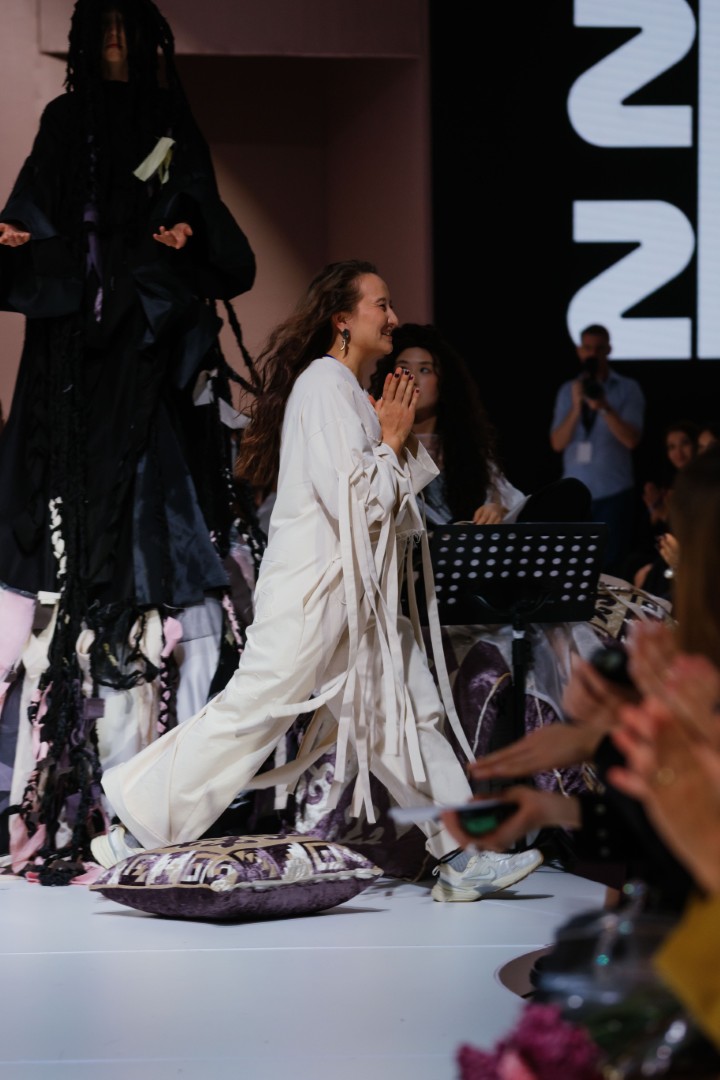 Tomiris Kupzhassarova has created a concept to materialize through clothing a heroine who finds her inner grounding and reconnects with the strength of her female lineage, erased from the shezhire (genealogical chronicles).