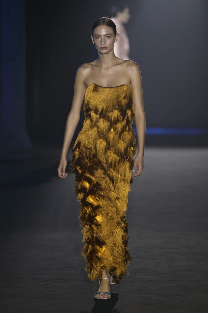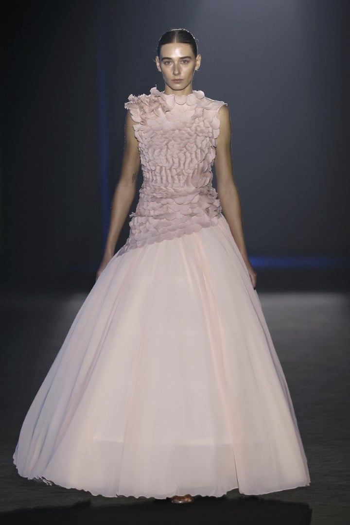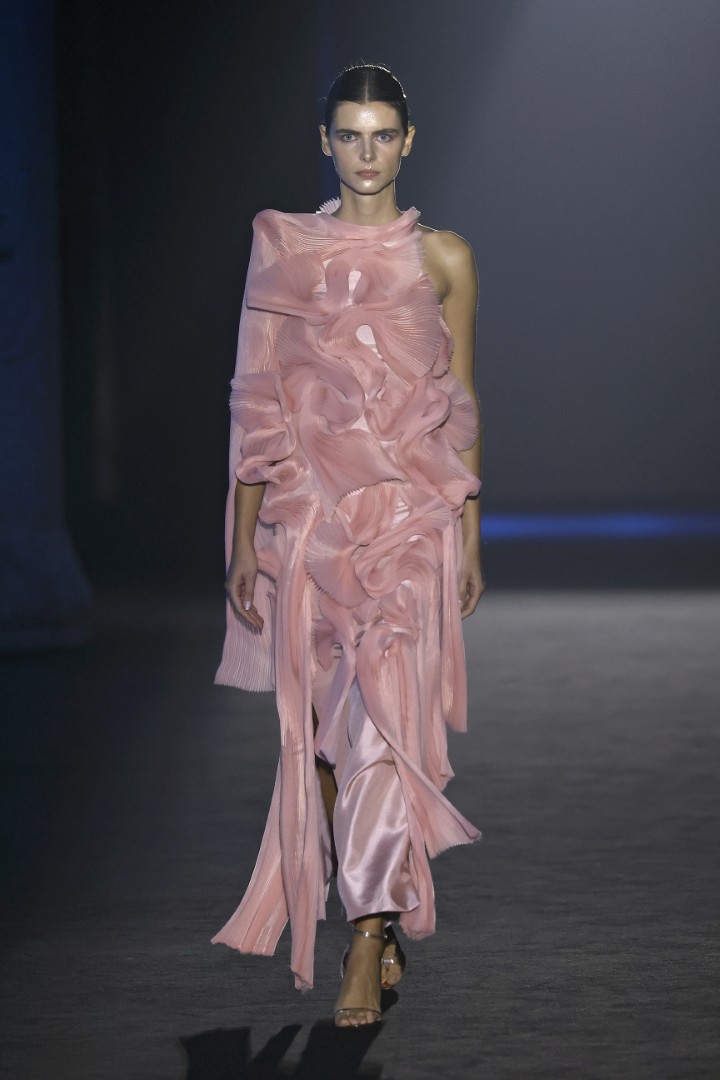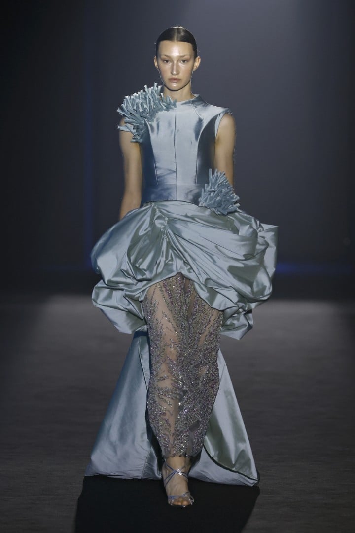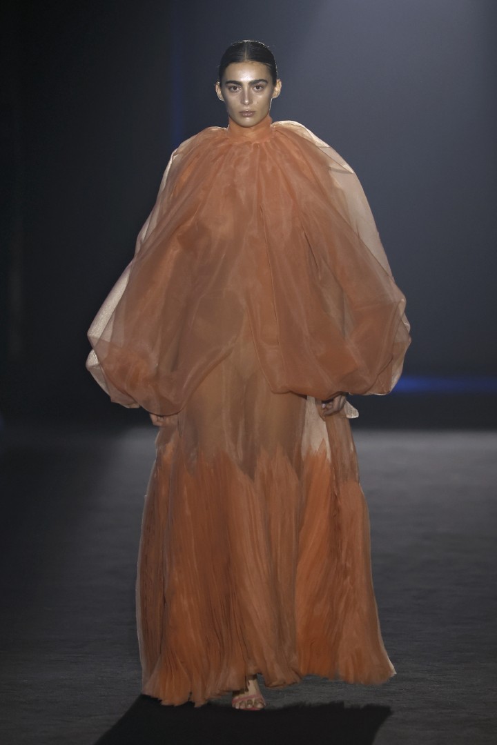 Organza, embroidered organza, sequins, maxi-sequins, silks, and fantasy fabrics are among the materials that lend each piece not only volumes that steal the spotlight from the models’ own bodies, but also a personality that feels almost indispensable when we zoom out and look at today’s fashion landscape. Texture, light, and movement are what actually linger once the designs leave my field of vision, and personally, I couldn’t ask for more.