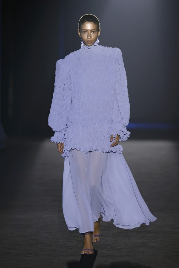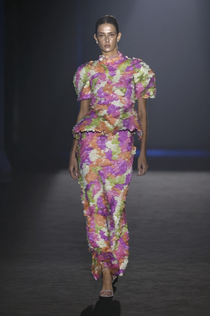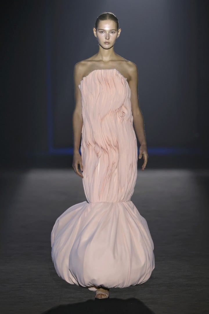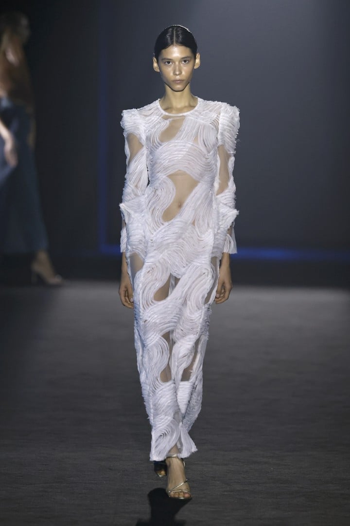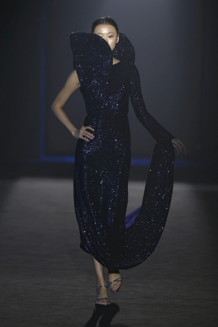 Organza, embroidered organza, sequins, maxi-sequins, silks, and fantasy fabrics are among the materials that lend each piece not only volumes that steal the spotlight from the models’ own bodies, but also a personality that feels almost indispensable when we zoom out and look at today’s fashion landscape. Texture, light, and movement are what actually linger once the designs leave my field of vision, and personally, I couldn’t ask for more.