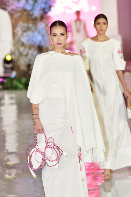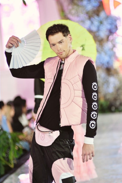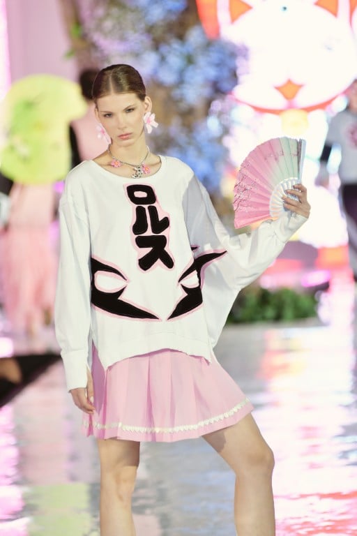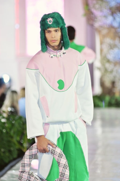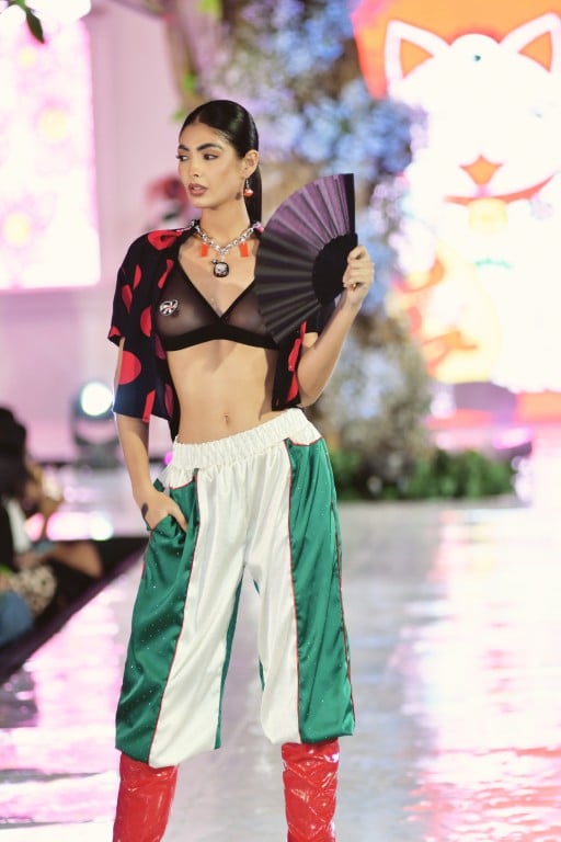 LORS presented their “PatchLORS” Collection, which highlighted their bold aesthetic and ecological commitment. LORS is a pioneer in the upcycling movement in Bolivia, and the brand’s designs have an irreverent style. This specific collection features recycled fabric scraps in a tribute to Japan, with an oversized unisex shape that incorporates fabrics with sakura and maneki-neko prints.