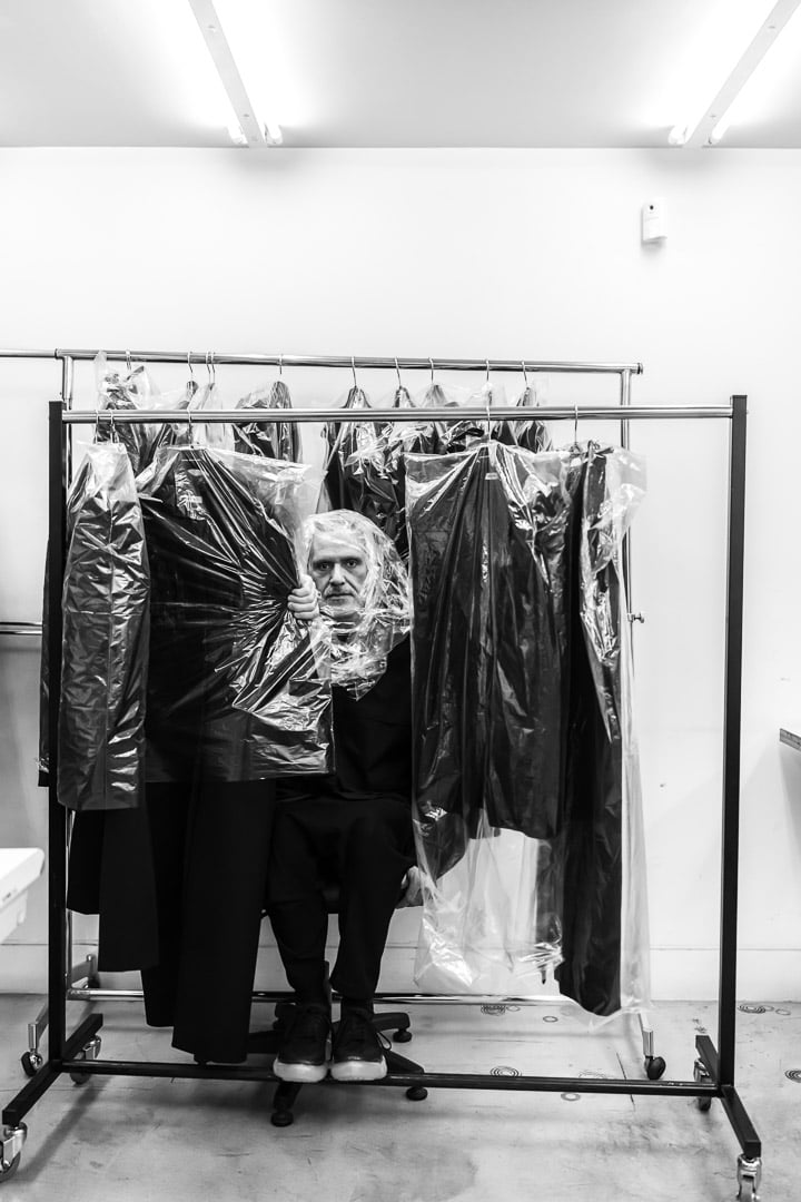 “And that’s what I did. Then I went to sleep in a convent, for further mortification,” he adds laughing. “And there I realized I had the argument of Liturgia. The white part, the habits, the celestial. The earthly part, which is painting, which is abstract art. All these armors, these huge volumes that deep down are also a cry against all this human garbage we’re living through, and which conceal a person, a body, a soul, a life that feels and suffers. And then I finish with this black part, which is mourning, the requiem and transformation.”