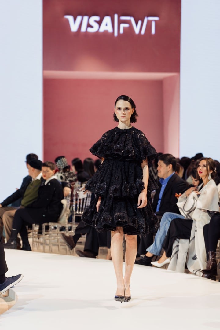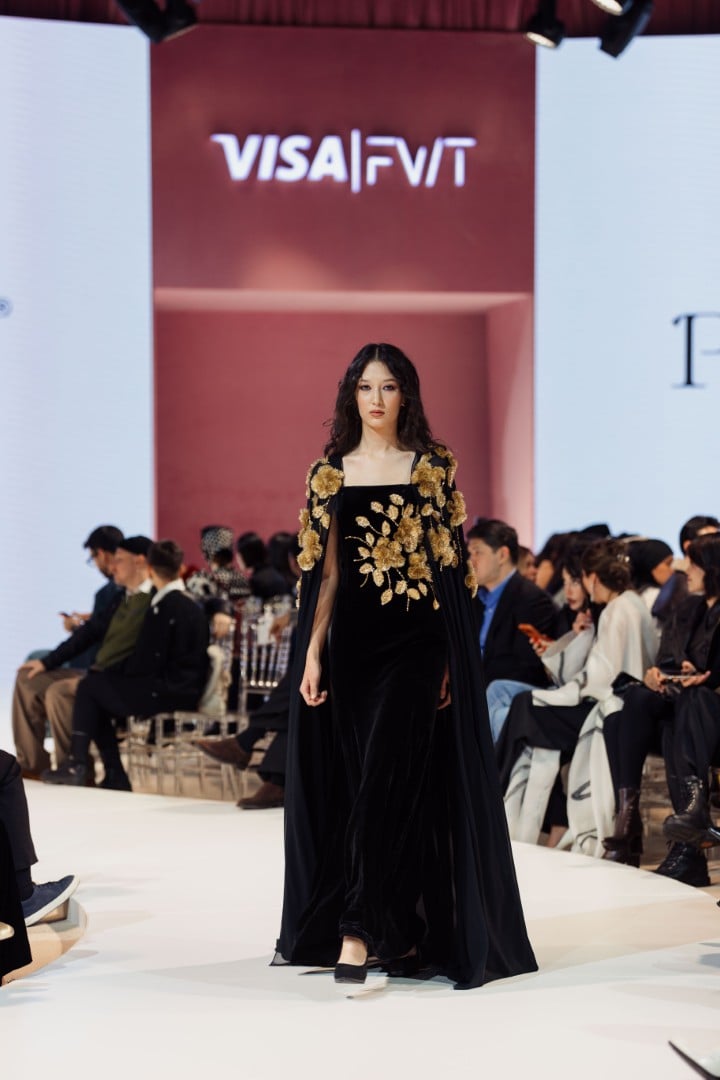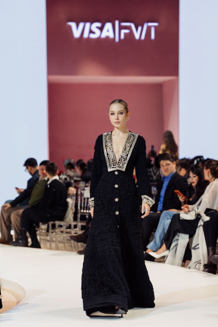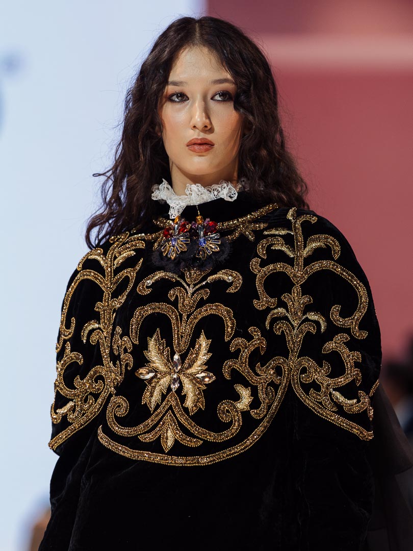 The collection presented at Visa Fashion Week Tashkent felt powerful. It expressed Porso’s vision of modern Uzbek fashion in an elegant, rooted, and appealing way to a broader international audience. The color palette was especially striking: predominantly black and gold, with a few white looks that added a calm, luminous contrast.