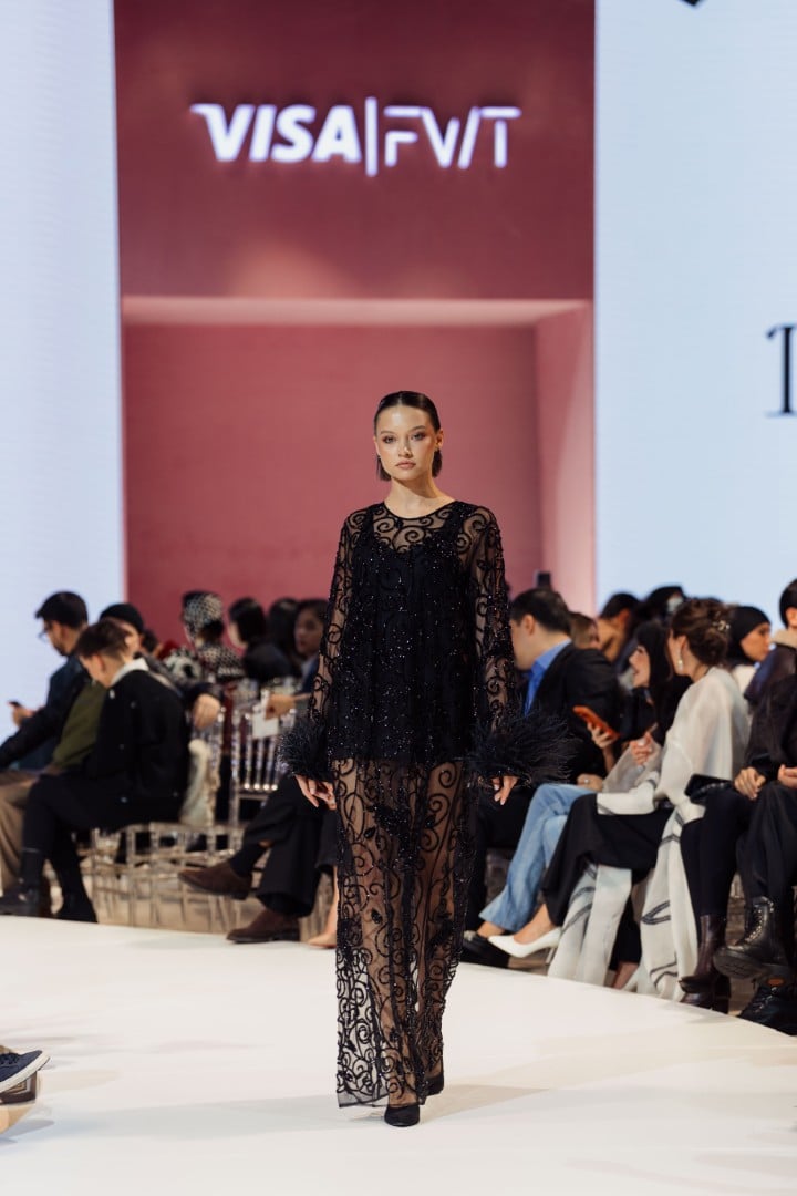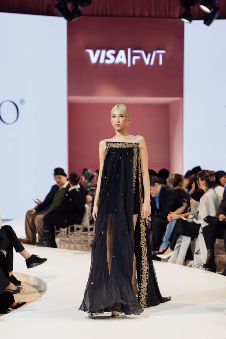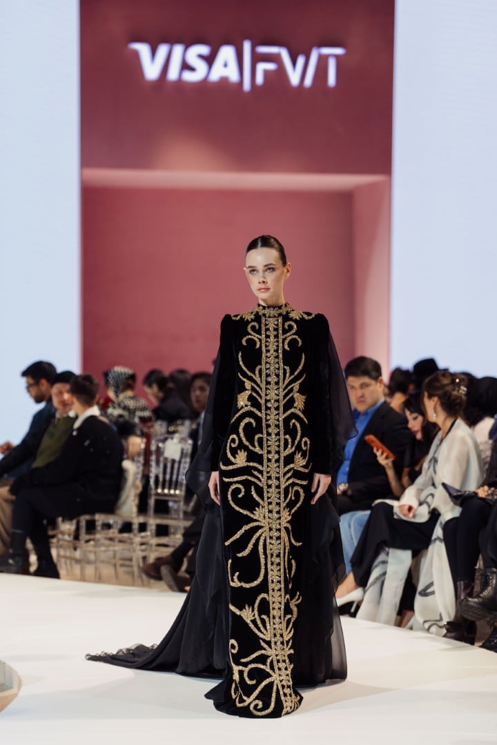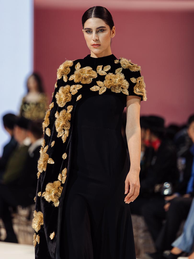 One look stood out to me most: a black gown adorned with soft, sketch-like gold details. It caught my eye immediately. It felt familiar, almost personal, as it resembled designs often worn in the Middle East, where I am from. I did not expect to see something like it in this collection, which made it even more special. The fabric appeared rich and high-quality, and the overall design felt elegant and perfect for significant occasions. It is a piece I strongly recommend people pay attention to.
